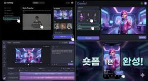 | 2. Gemini 기반 | 나노바나나 캐릭터·배경 생성 | 숏폼용 9:16 비율 최적화, 프롬프트 없이 클릭만으로 구현 |